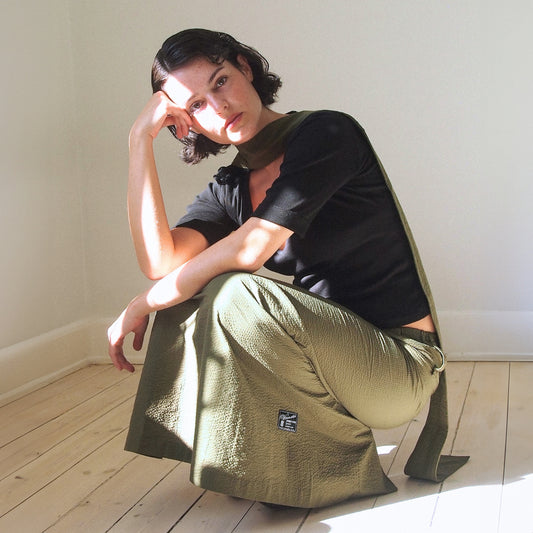Taro Skirt in Olive Seersucker