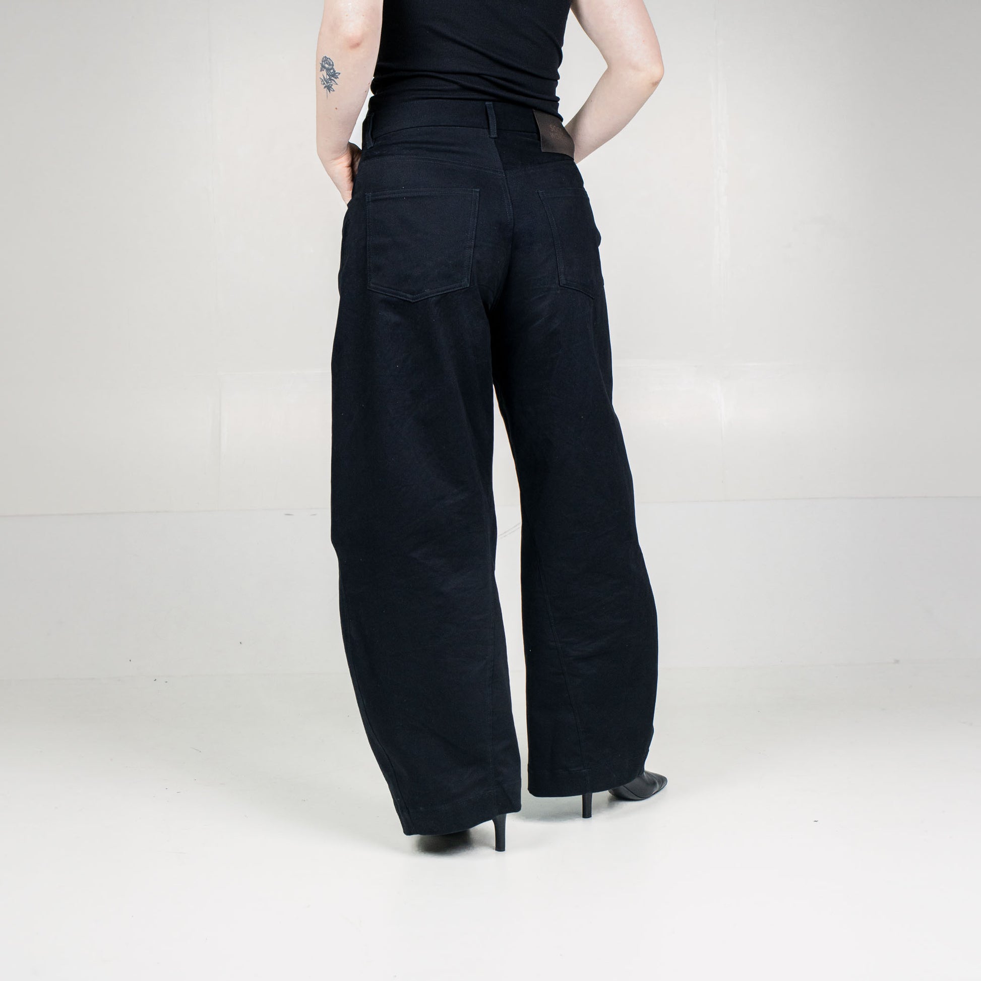 Barrel-shaped trousers in soft Spanish cotton twill. Curved seams shift toward the front and back, emphasizing the deconstructed, rounded shape. Four-pocket style with a relaxed fit and zip fly front closure. Designed for versatility, the Barry Trousers can effortlessly be dressed up or down for work or drinks. A grab-and-go piece you will keep reaching for!